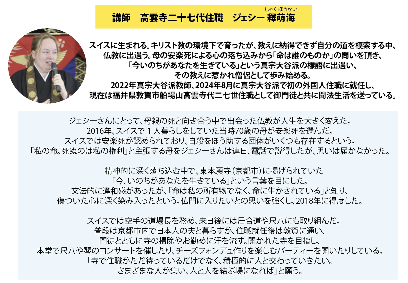 楷定寺では、法座の他に「宗教文化講座」として、広く私たちが生きていくなかで有意義な文化を紹介しています。宗旨宗派にとらわれず、自由で楽しい時間を提供しています。現在は「説法円坐」と題して、仏教のお話と、円坐になってそれぞれが自由に語り合い聴き合う場を毎月1回開催しています。どなたでもどうぞご参加ください!